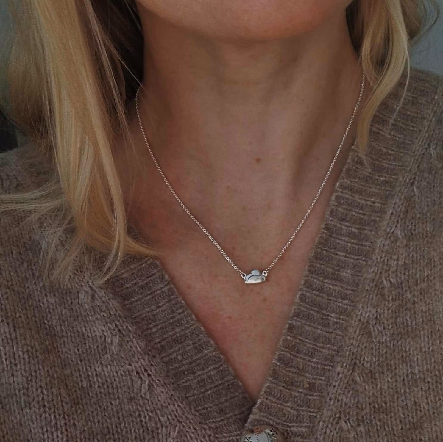 "Cloud" necklace in silver 1,717.39 NOK Add to cart About the product Material This necklace is made in 925 sterling silver. The chain is 42-45cm long. The cloud is ca 11x7,5mm.Production This piece of jewelry is made in Sweden. Delivery This necklace i ready to be delivered and will be sent to you within 2-5 working days.