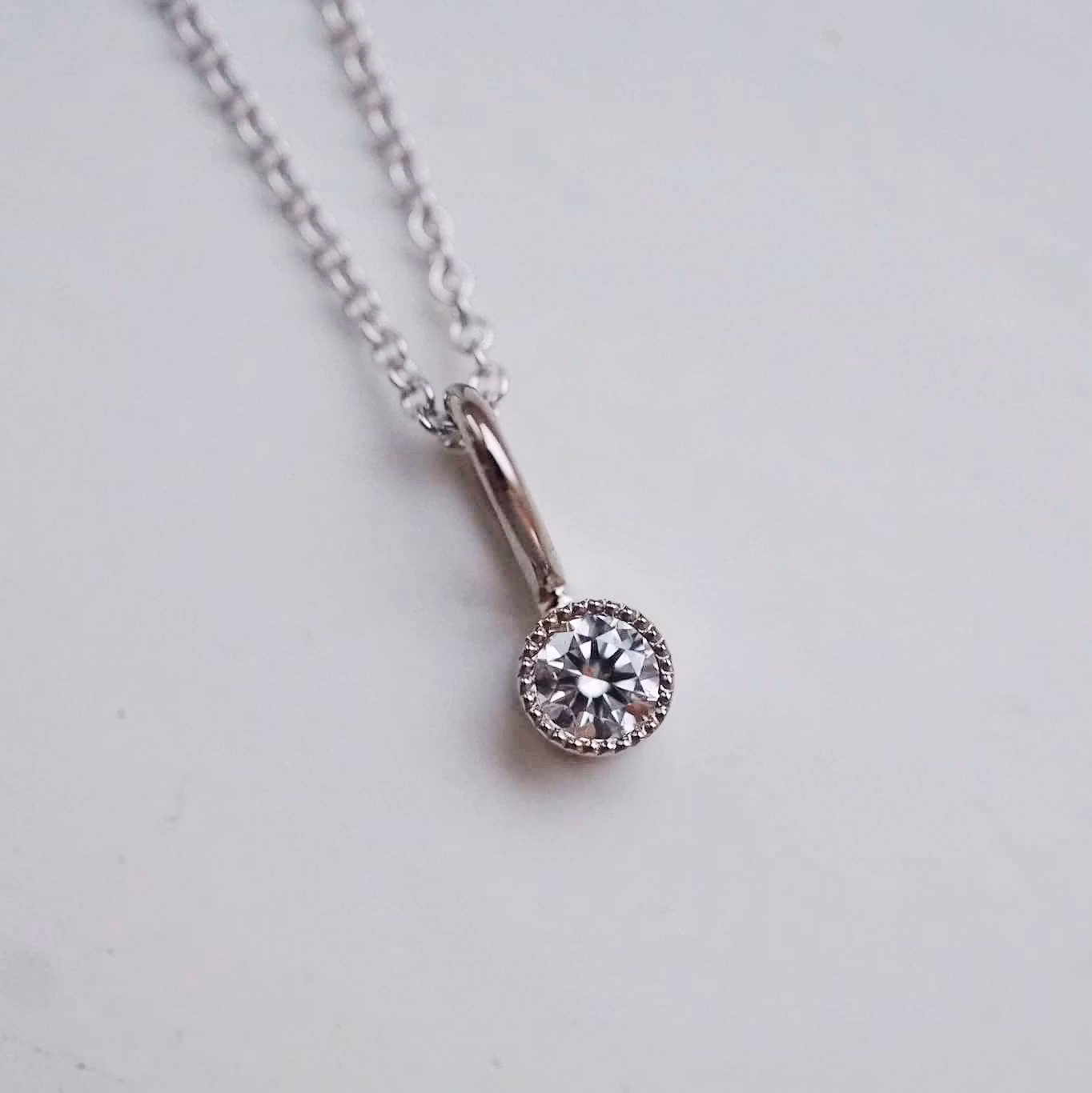 This pendant is made out of 18K white gold with a 0.15ct W/SI diamond.